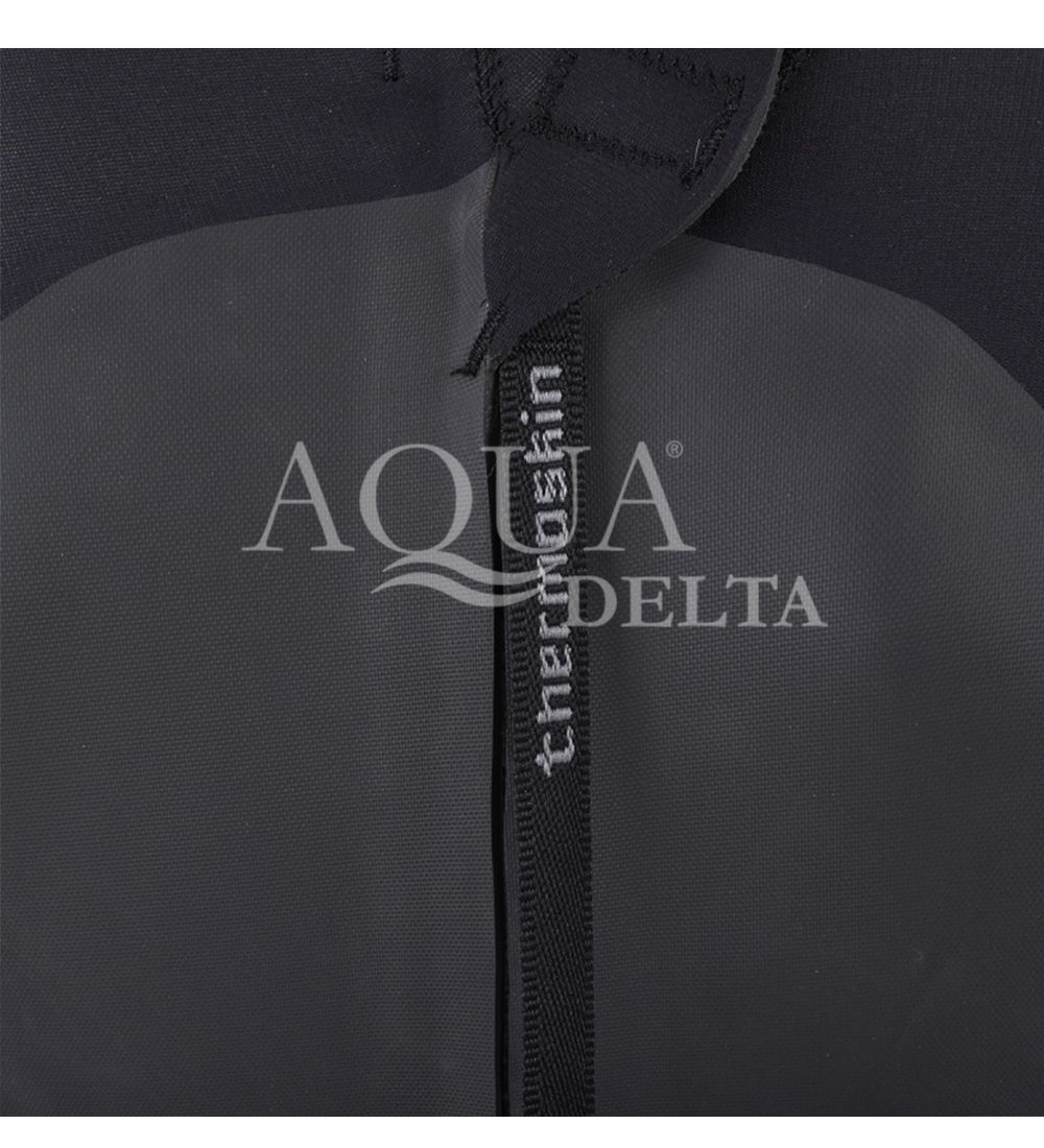 - Paneles de pecho y espalda en mesh skin (goma exterior), evitando el efecto windchill (baja temperatura corporal por tejido exterior mojado sometido a viento), reduciendo la aislación térmica del traje