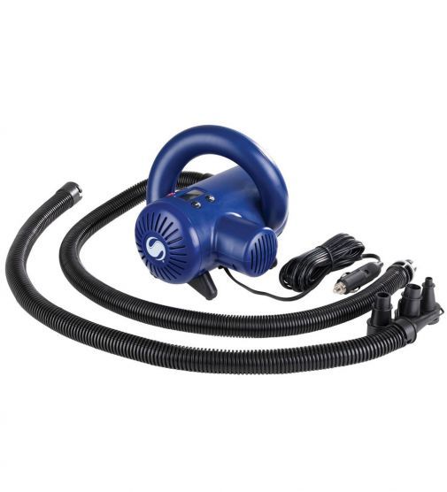 - El inflador eléctrico funciona conectado a 12V y suministra hasta 15 PSI (1 bar) de presión, para efectuar un inflado de alta presión de kayaks y stand up paddle sin esfuerzo.