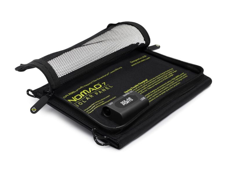 NOMAD 7 es un panel solar ligero y compacto que genera energía para poder cargar tus equipos que tengan el cable de carga para USB o 12 Voltios.