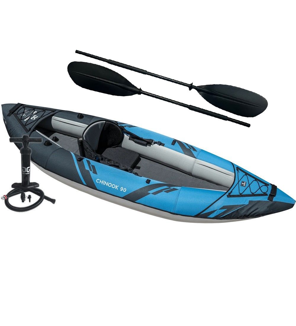 - Incluye: kayak, asiento, bomba, aleta de liberación rápida, bolsa de almacenamiento y kit de reparación.