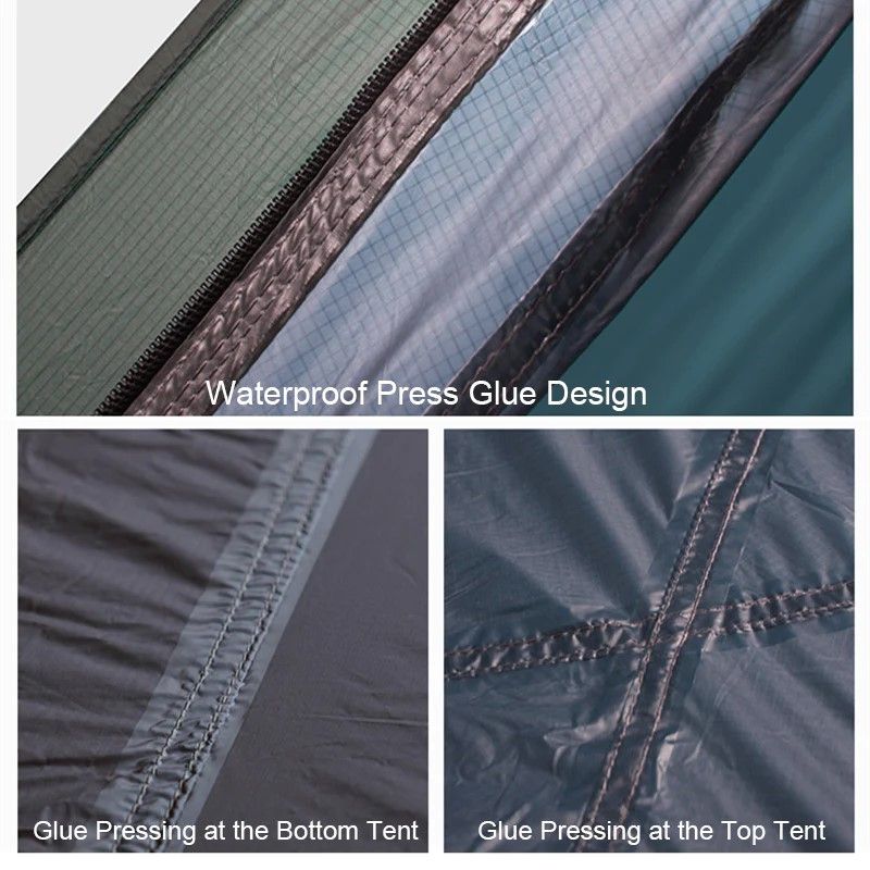 - Impermeable PU4000: Los tejidos de la carpa y la parte inferior es tela de nylon de silicona 20D (recubierto de silicona de un solo lado), PU4000 tela impermeable puede evitar el paso de la lluvia, el viento y el frío, y también es transpirable, estable y duradera.