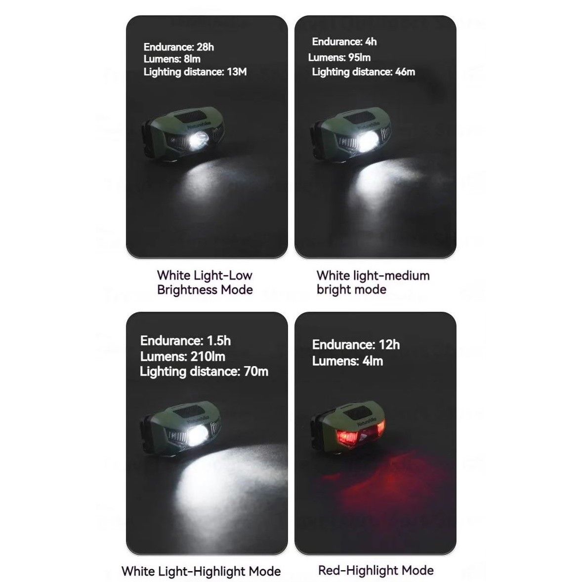 Linterna frontal superbrillante Naturehike, ángulo de haz ampliado a 70 grados. Adecuado para corredores de trail, excursionistas y alpinistas que también tienen que moverse en la oscuridad.