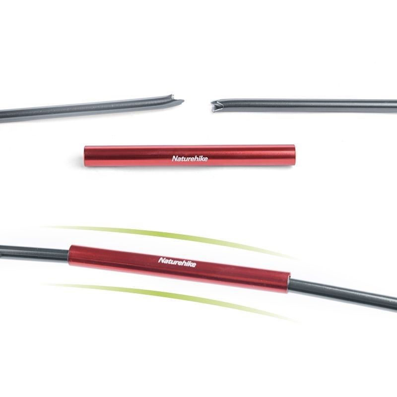 Kit de reparación que resulta útil como conector de varillas de la carpa cuando se rompe durante el viaje (tubo de emergencia). Fabricado en aleación de aluminio, ligero y resistente, fácil de llevar a cualquier parte y no ocupa espacio.